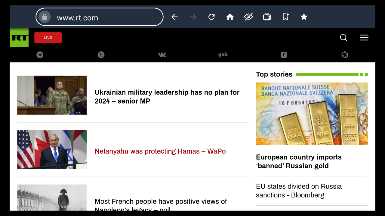 Just type the News Web Site address (URL) into the Internet Browser address bar then click on Live to watch. Also, click on Full Screen |